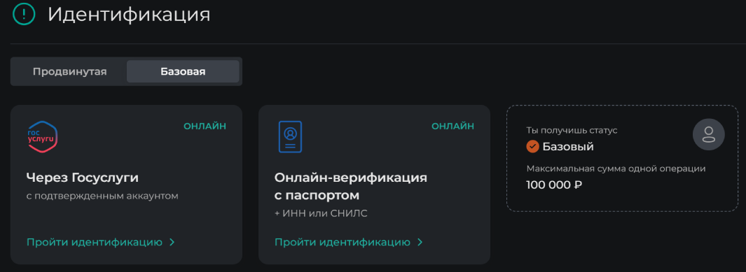 - пройти идентификацию личности через паспорт или систему «Госуслуги».
